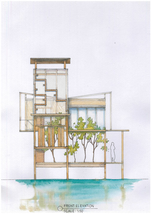 The studio residence is designed for a Japanese fabric dollmaker, Yuki Atae to be located across the serene waters of the River of Life.
